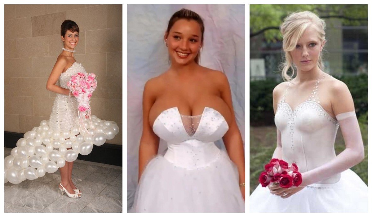When a young girl imagines her wedding day, she pictures herself walking down an aisle, capturing everyone’s attention with her princess-like appearance. As her soon-to-be husband sees her approaching him, he envisions a stunning bride in a gorgeous dress. This is the ideal scenario. However, the truth is that some brides have unconventional style preferences. Below, you will find a list of 50 of the most unattractive wedding dresses ever seen. If your betrothed shows up wearing one of these gowns, you may want to consider running in the opposite direction as quickly as possible.