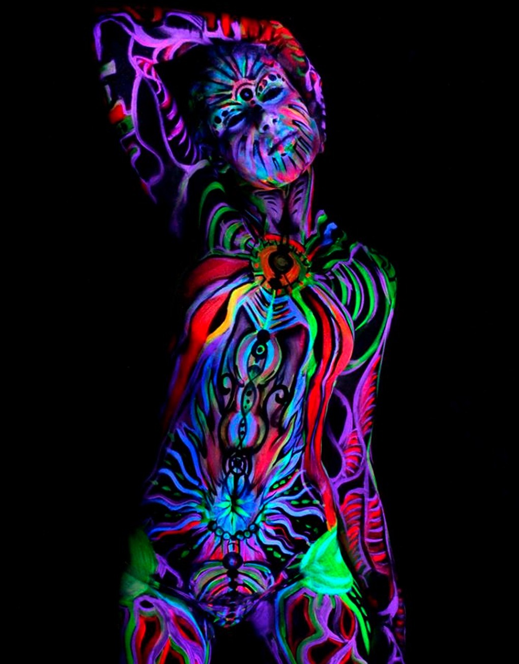 Glow-in-the-dark paint makes body art more imaginative.