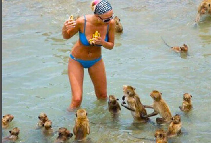 When you visit the beach, you might be worried about birds stealing your food. In this case, the woman had to worry about monkeys instead, who are admittedly more adorable but also present a greater danger. Surprisingly, the monkeys seemed very comfortable around her, suggesting that women appreciate the company of playful animals.